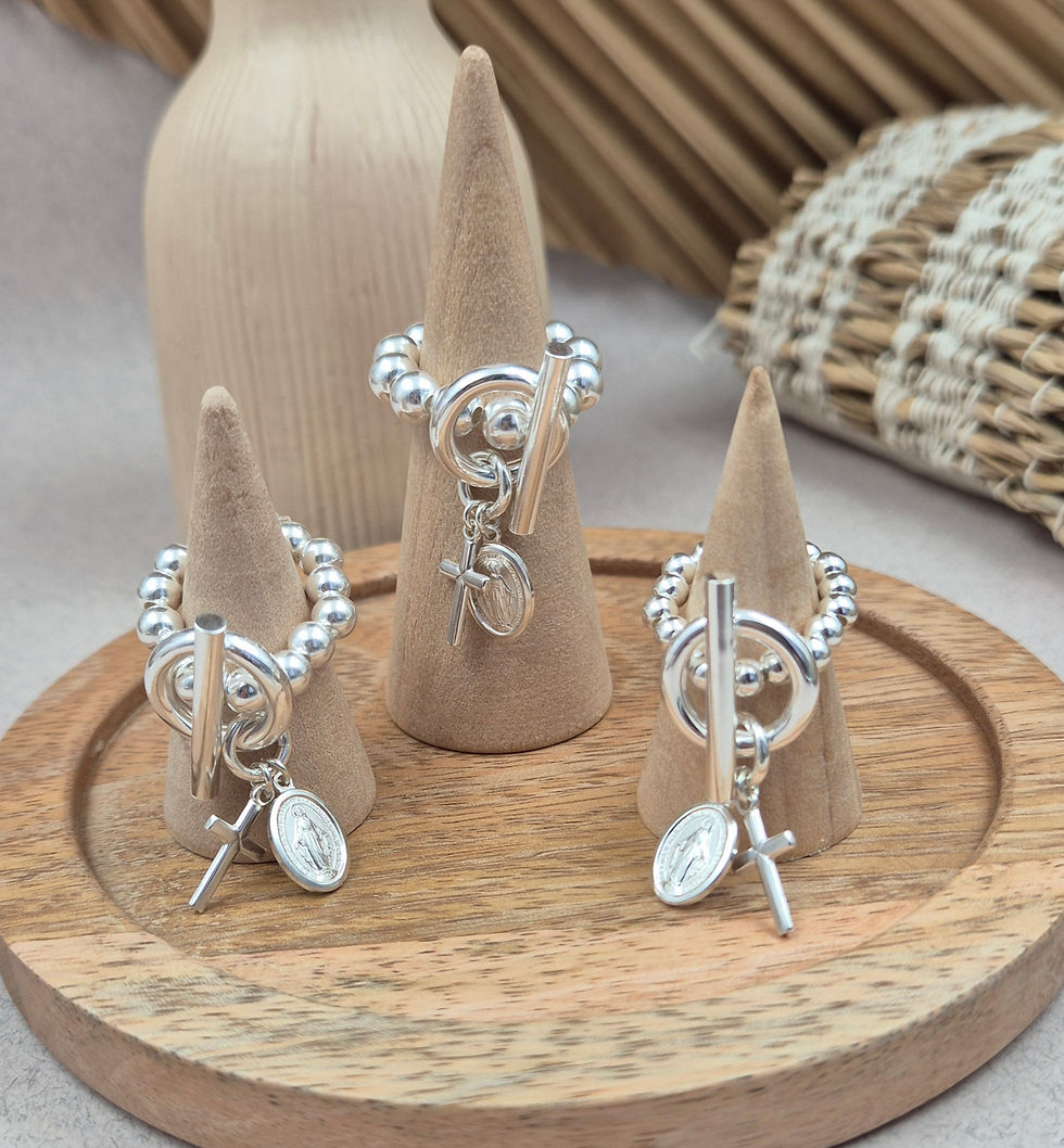 Bague perles argent 925- fermoir T - médaille vierge et croix